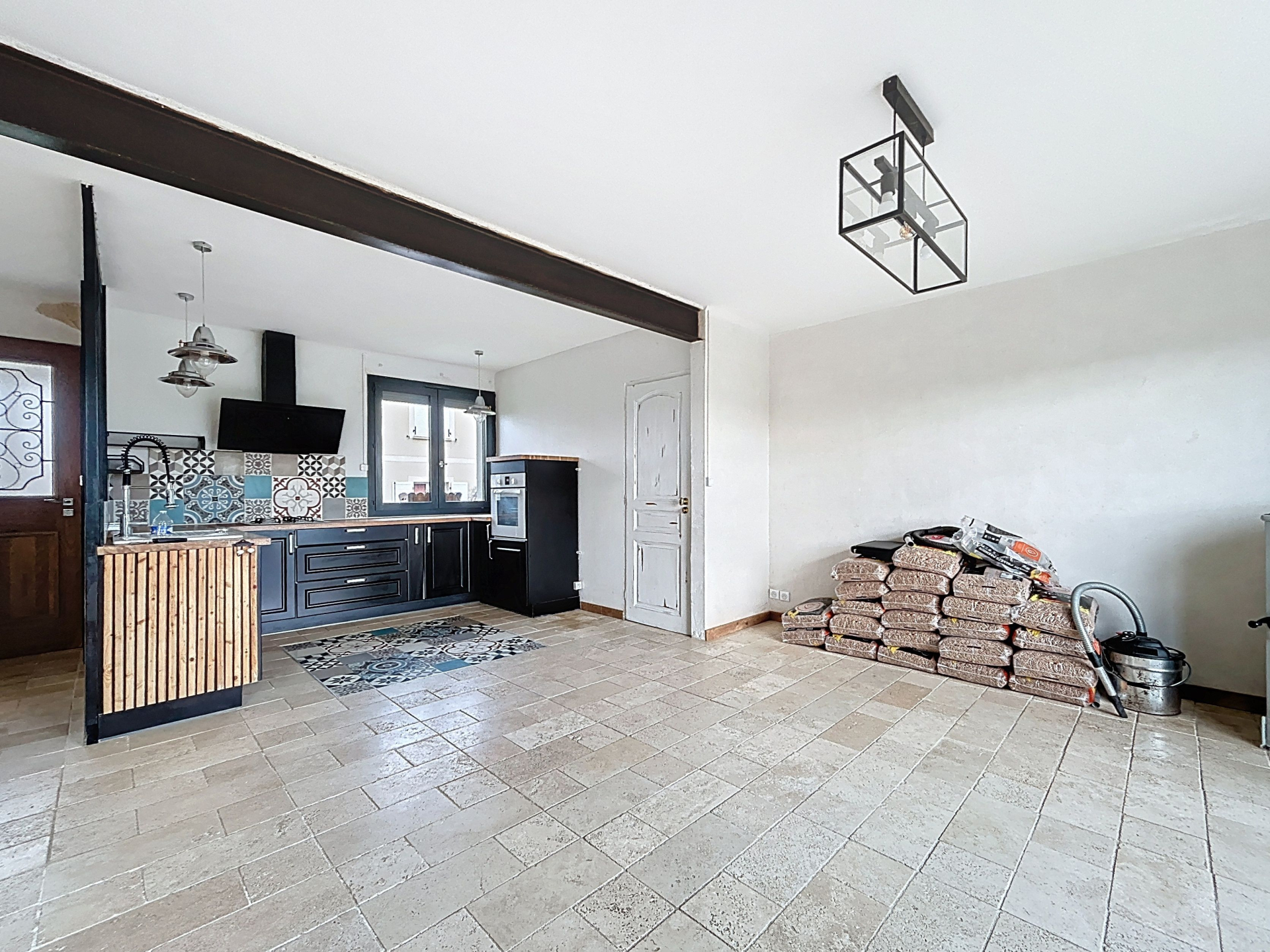 1Maison de plain pied édifiée sur sous sol total comprenant une entrée, un séjour avec poêle à granulés, une cuisine aménégée et équipée, deux chambres, une salle d'eau et un W.C; Beau terrain de plus de 1000m² Piscine semi enterrée