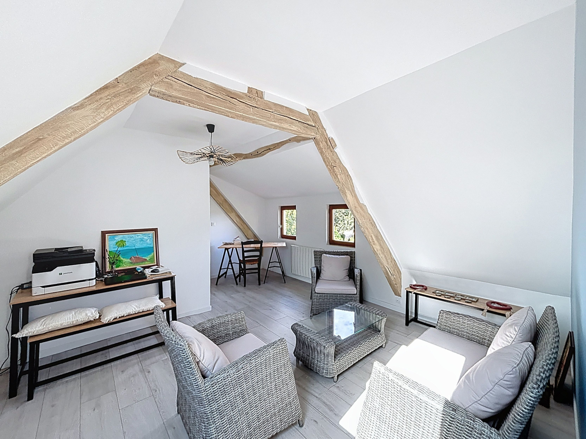 À l'étage : grand palier desservant une suite parentale (salle d'eau, WC, dressing) offrant une belle hauteur sous plafond.