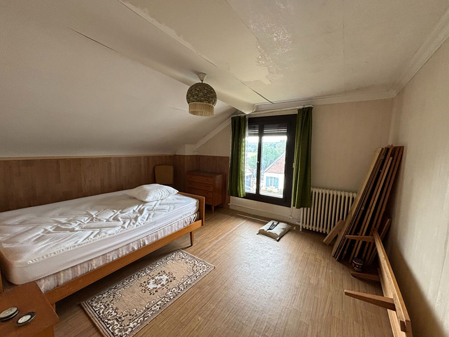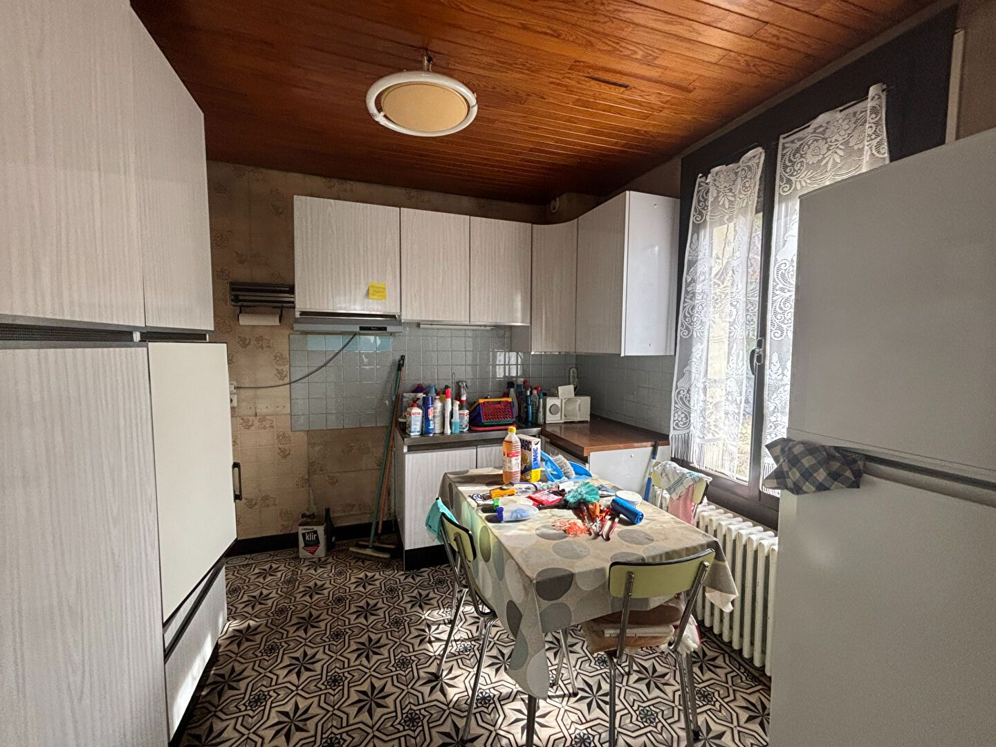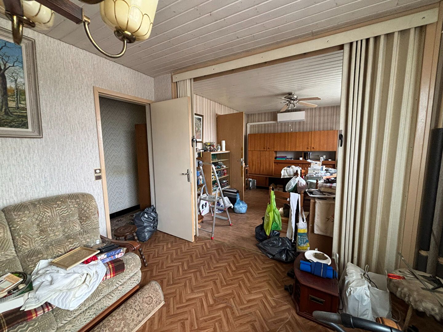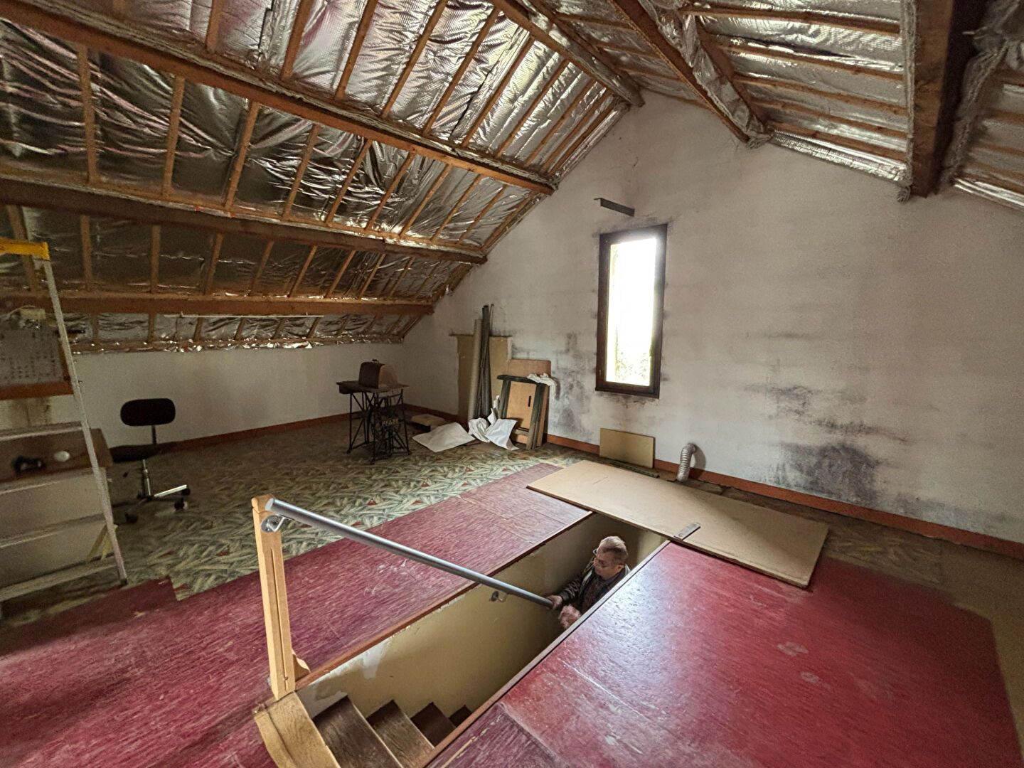 Maison édifiée sur sous-sol total comprenant : une entrée, un couloir desservant un séjour lumineux, une cuisine, une salle d'eau avec WC et une chambre, A l'étage : une pièce d'environ 30m² desservant deux chambres. Terrain : 700m² environ.
