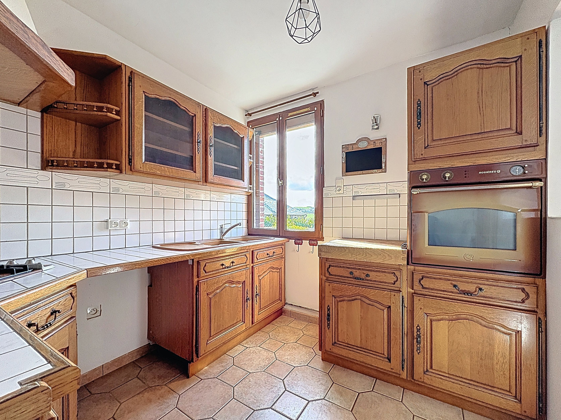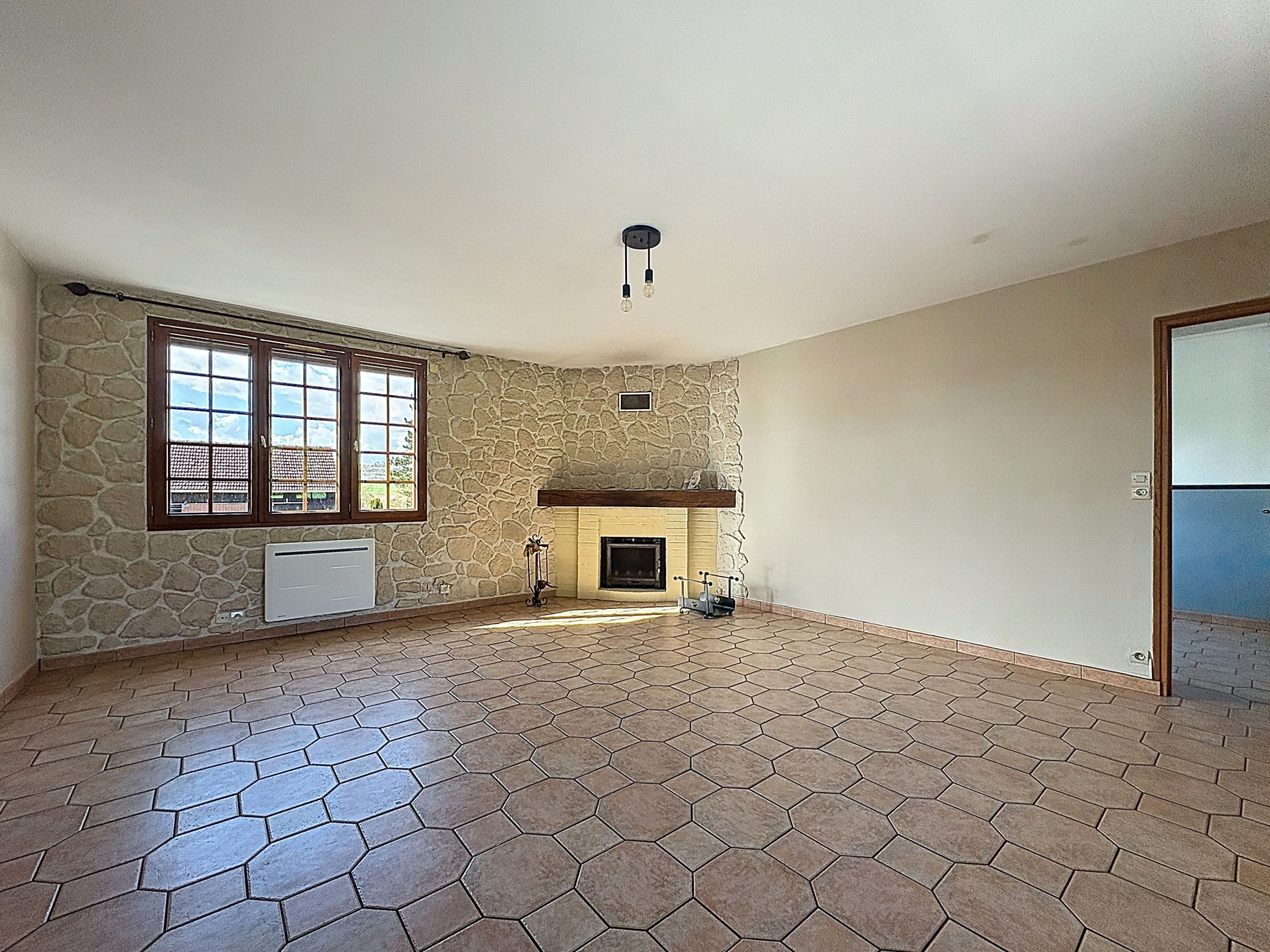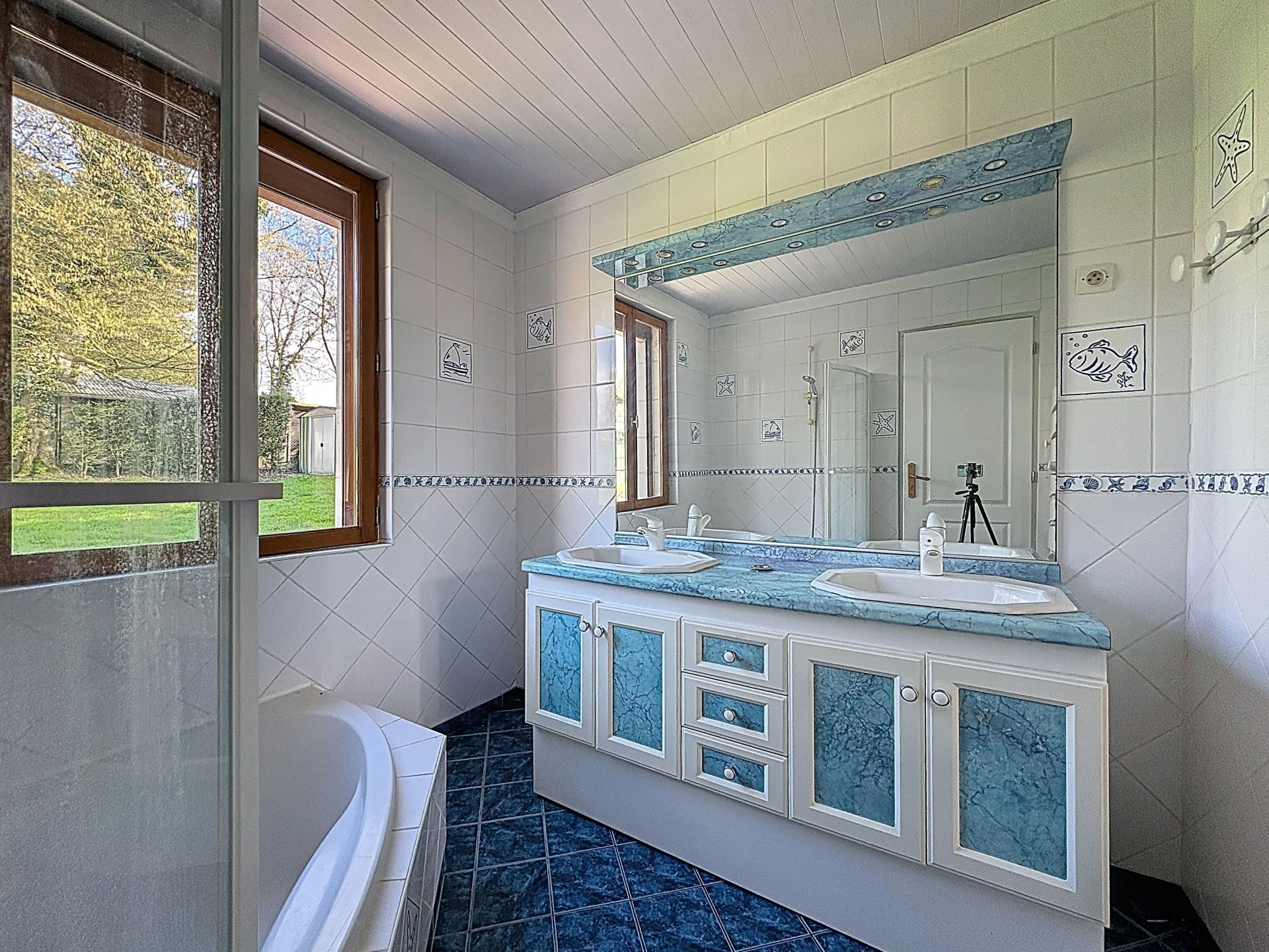 A vendre, belle longère de 102m² au calme avec vie de plain-pied comprenant au rez-de-chaussée, une entrée, une cuisine aménagée, un séjour double de 26m², première chambre, un couloir donnant sur la salle de bain avec double vasque et accès à un beau dressing.