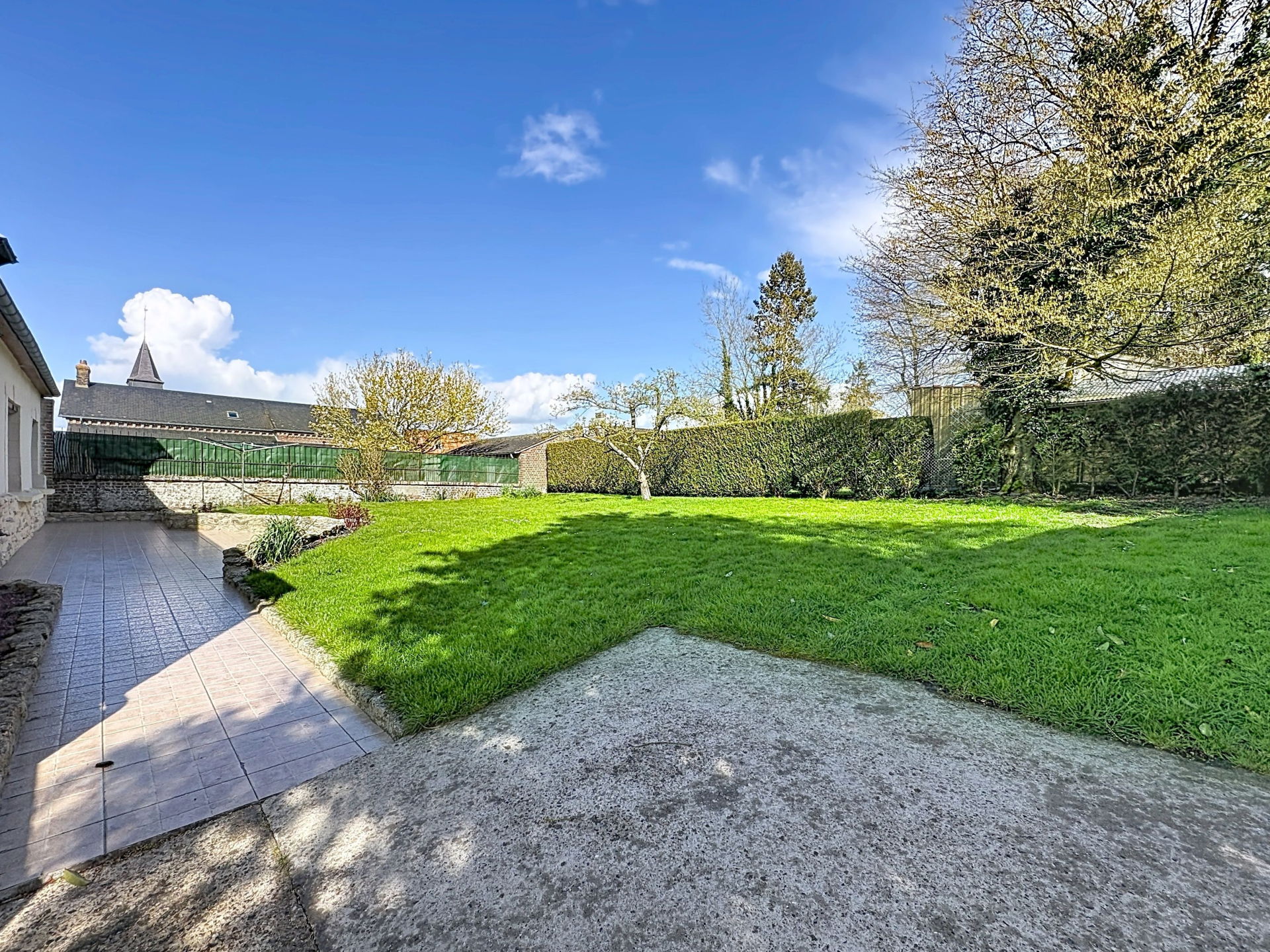 Un beau jardin de 450m² avec terrasse et un abris bois.
