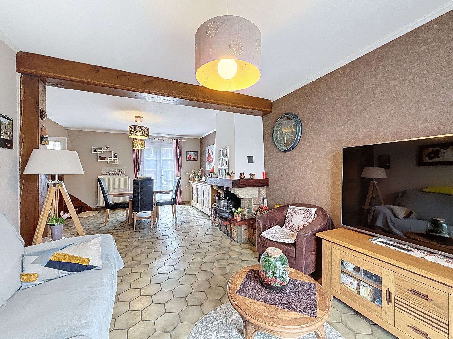 Venez découvrir cette belle maison proposant au rez de chaussée ; entrée cuisine équipée, séjour double avec cheminée, une chambre , salle de bains avec douche. À l'étage ; palier, trois chambres, salle d'eau + WC. Beaucoup de rangements.