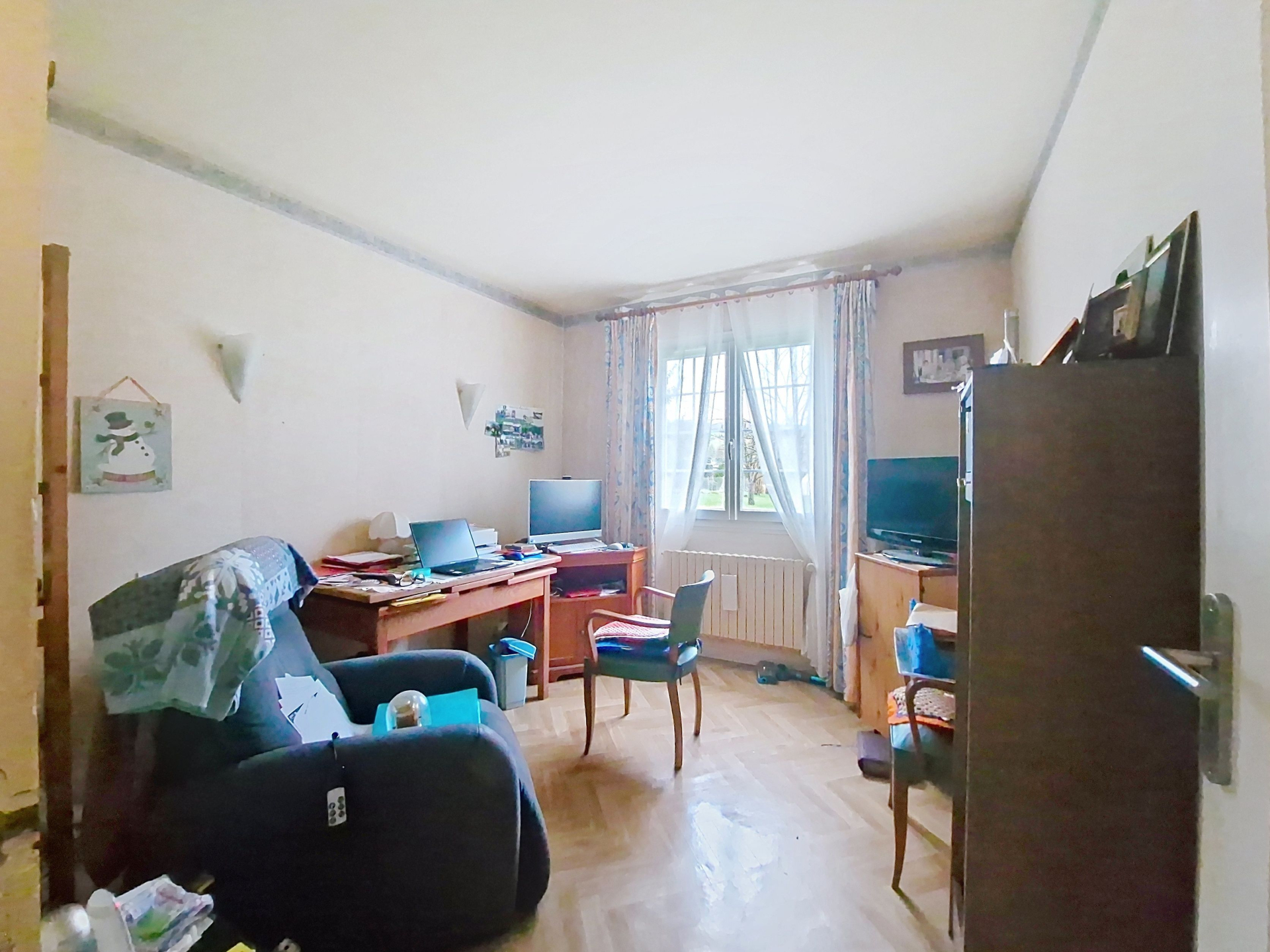 Pavillon individuel de plain pied édifié sur sous-sol total comprenant: entrée, séjour double lumineux avec cheminée, une cuisine équipée, 4 chambres et de nombreux rangements.