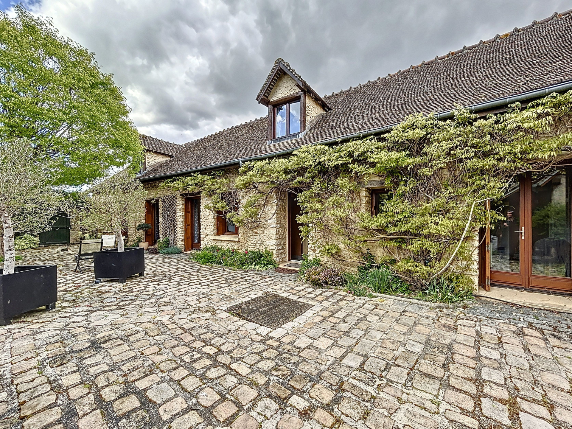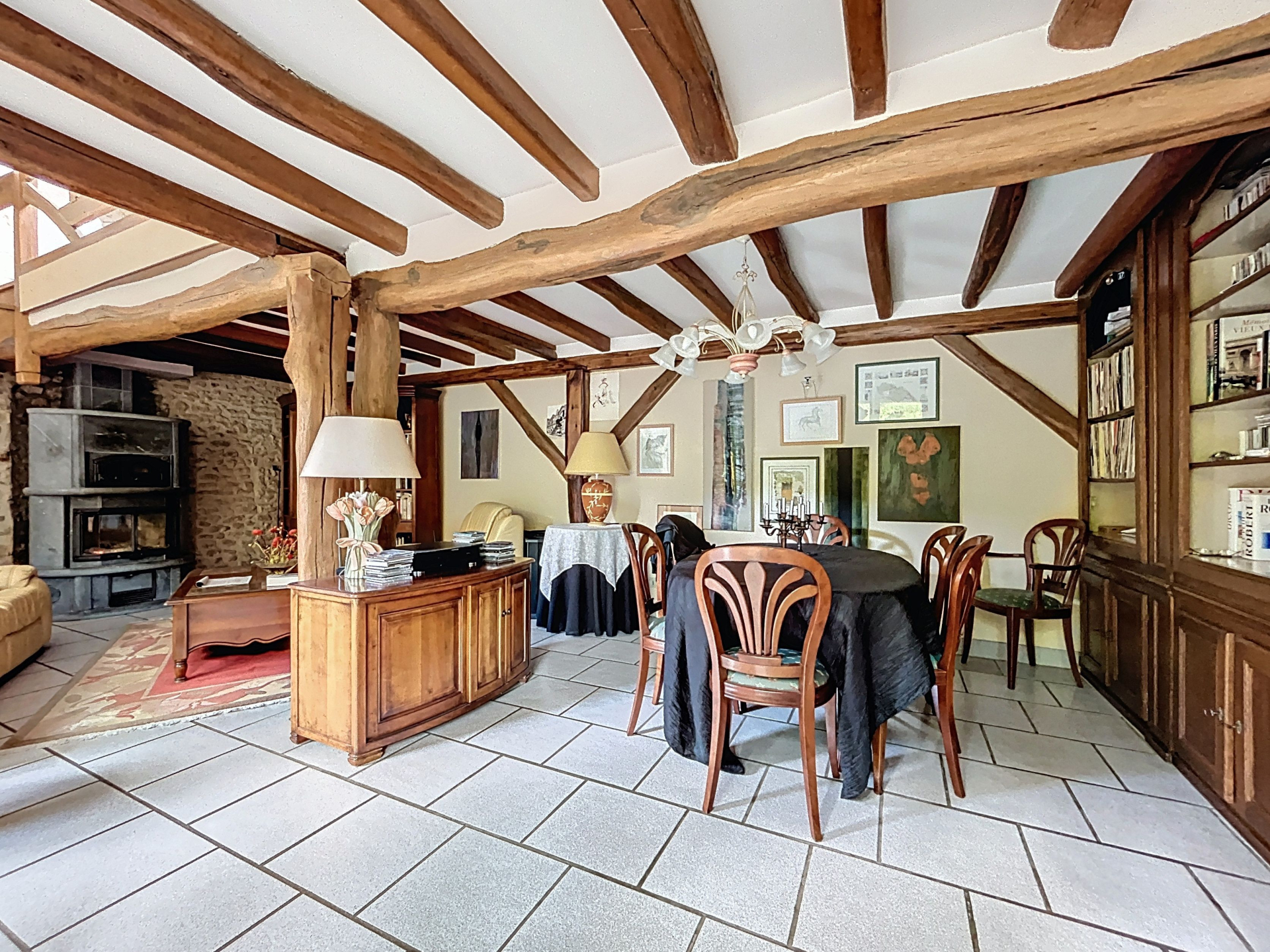 Dans un environnement exceptionnel, très belle propriété sur près de 8000m² de terrain, entièrement clôturé et arboré, comprenant : une entrée, une cuisine aménagée, un double séjour avec poële de masse, une grande chambre, une salle de bains avec douche, un cellier. A l'étage : 3 chambres, une mezzanine, une salle de bains avec douche et un wc. Belle dépendance et double garage avec combles aménageables.