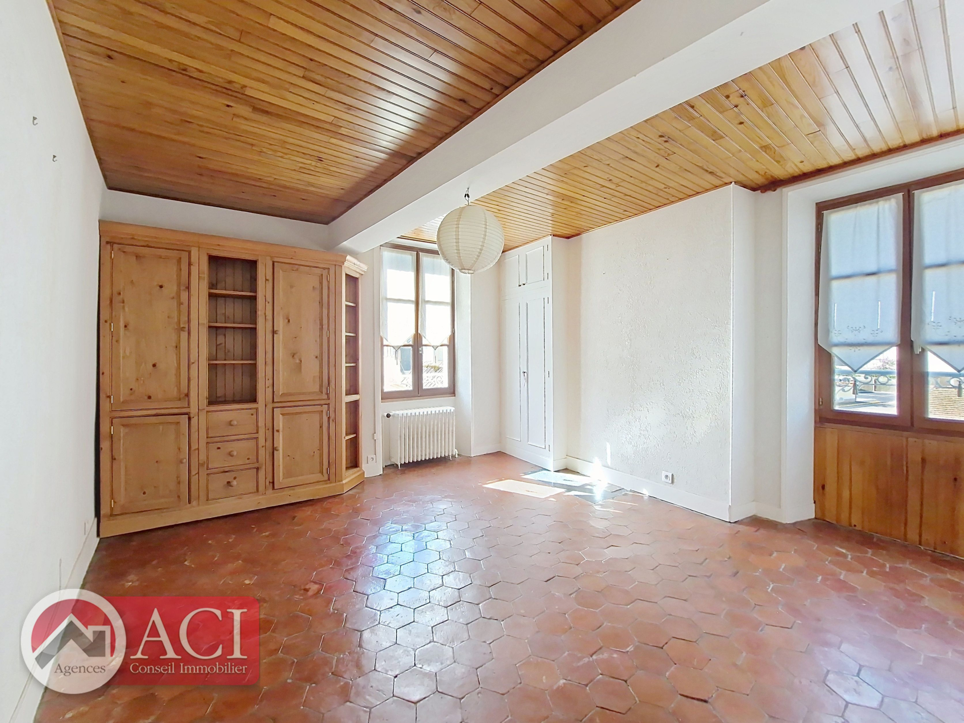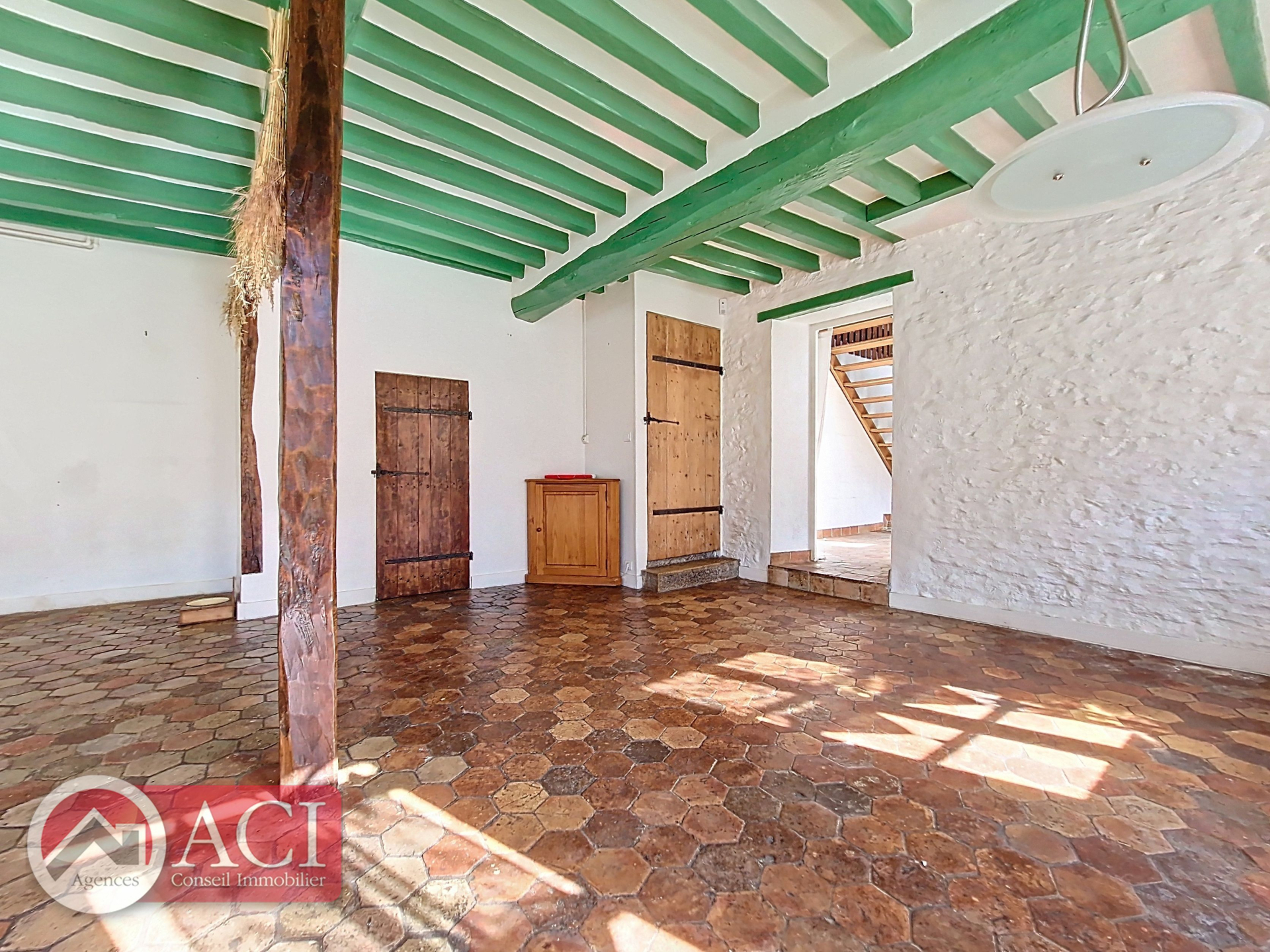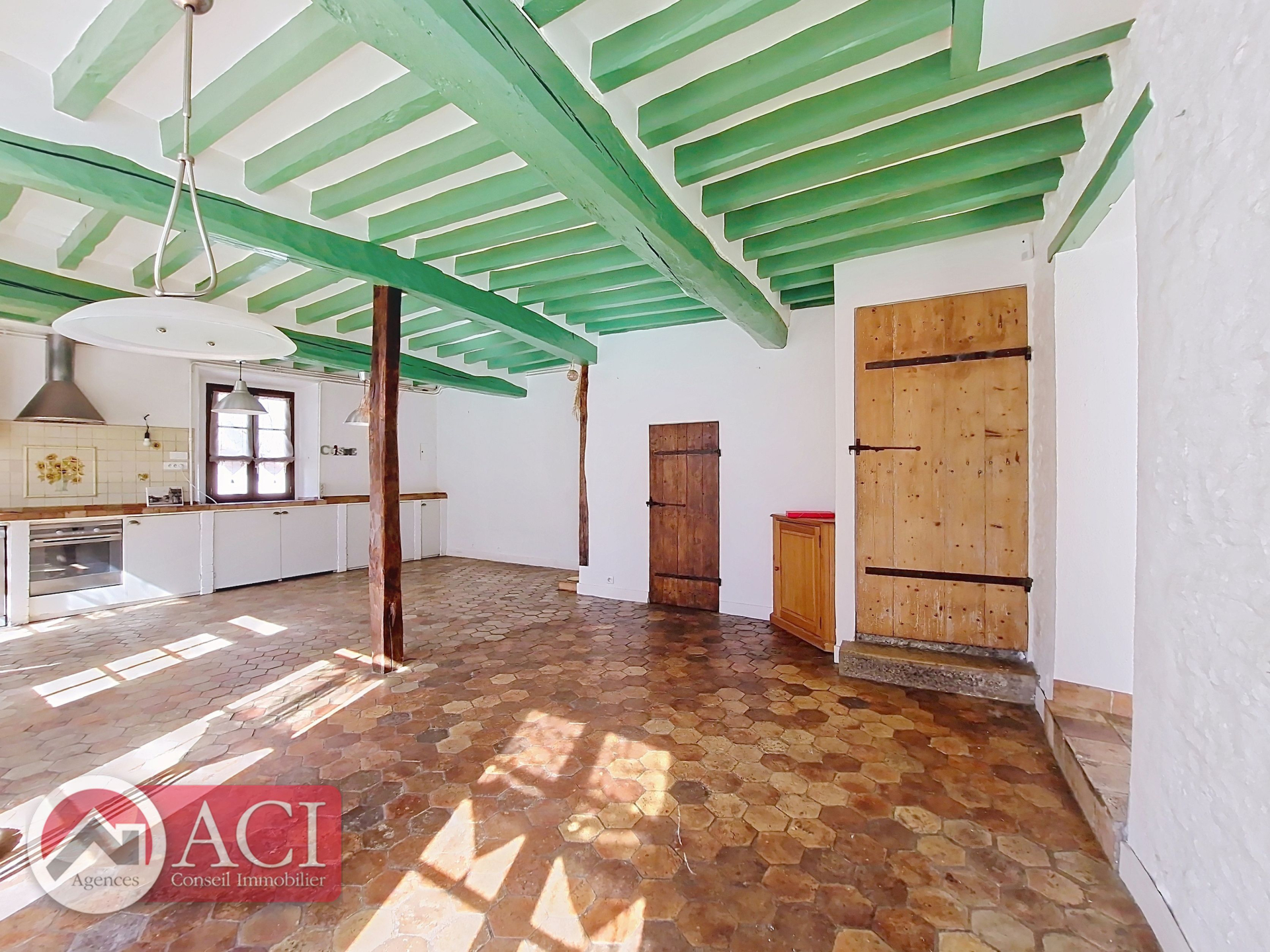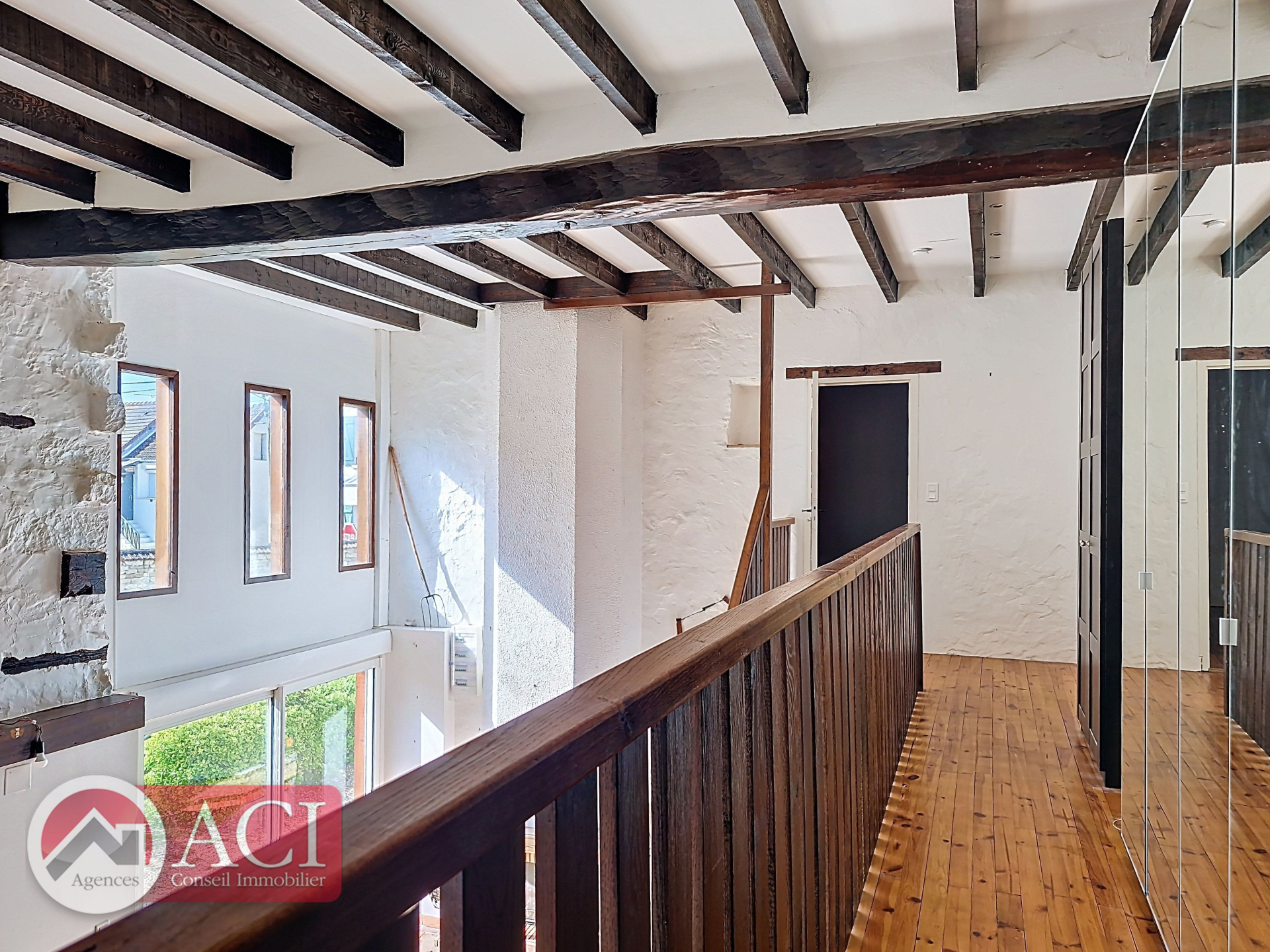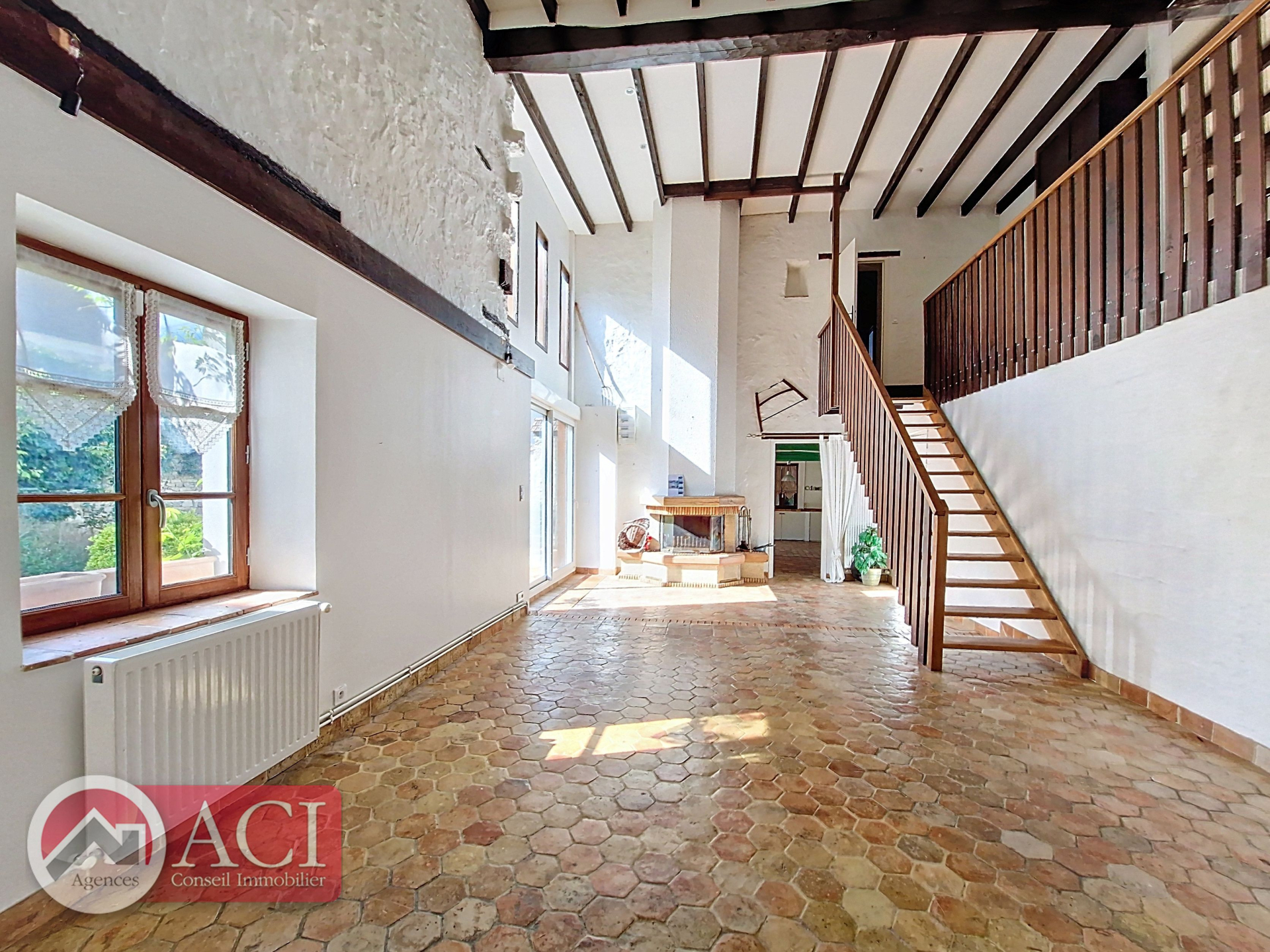 Maison ancienne comprenant au rez de chaussée: entrée sur cuisine aménagée, séjour double cathédrale avec cheminée, chaufferie, bureau, salle d'eau et sauna attenant, cellier.