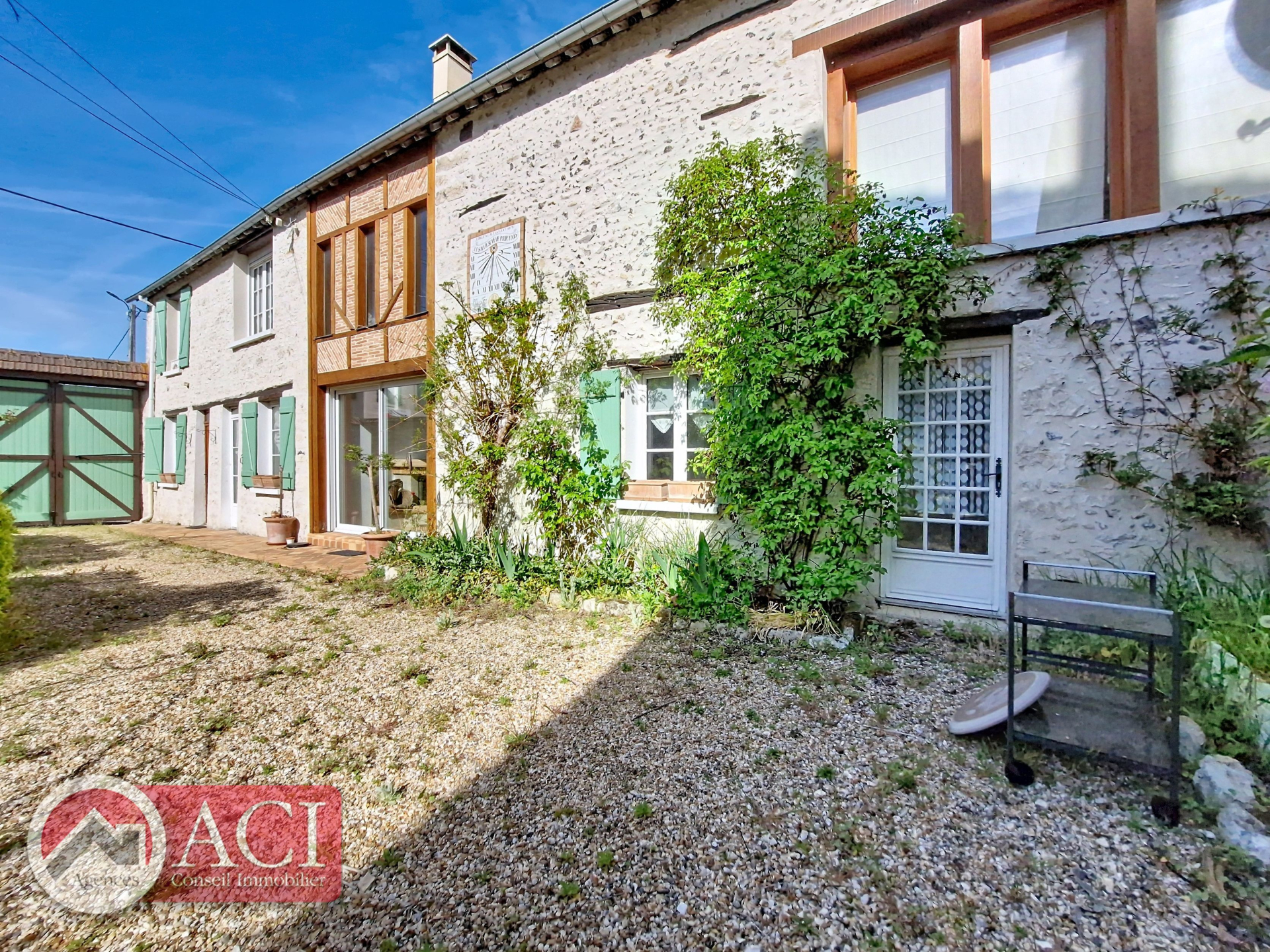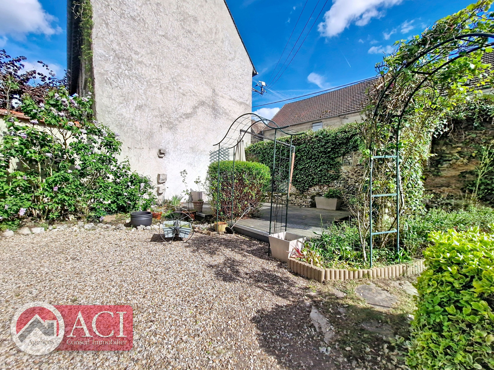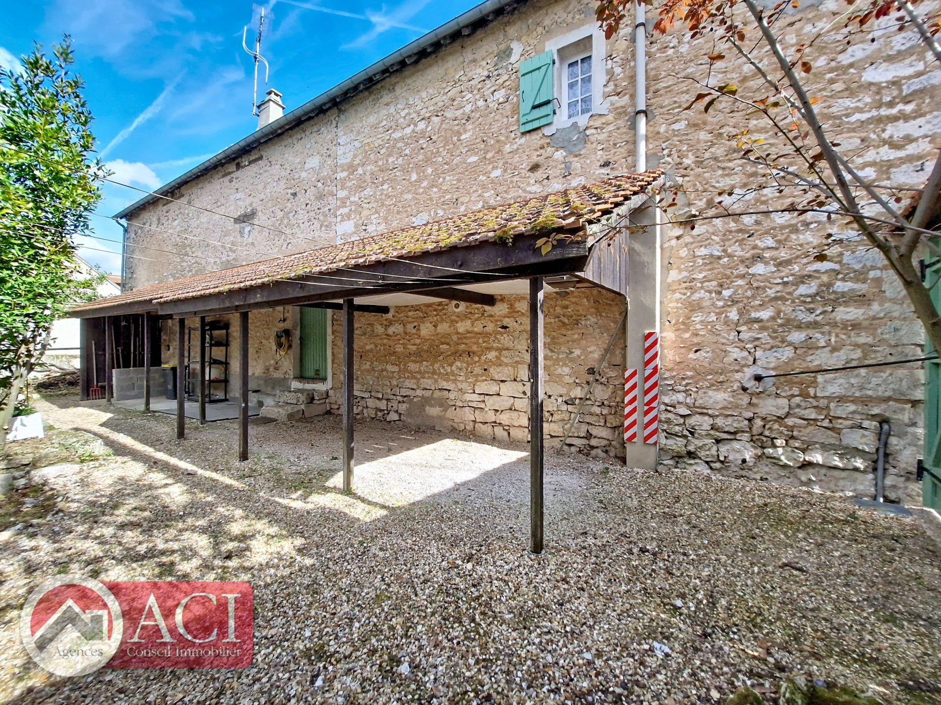 Grenier au dessus. Cour devant et jardinet arrière. Abri à bois et carport voiture.