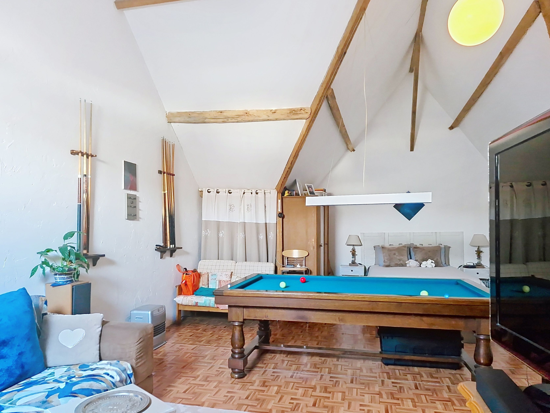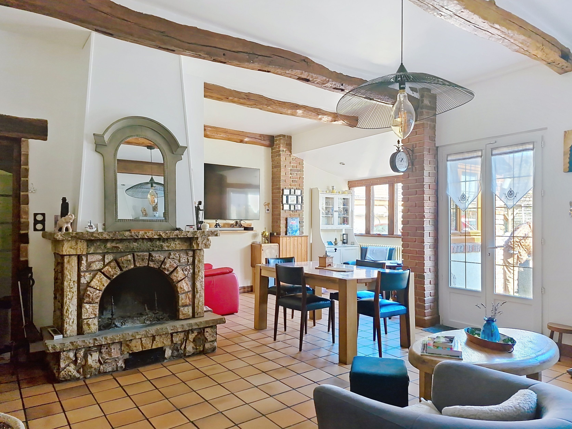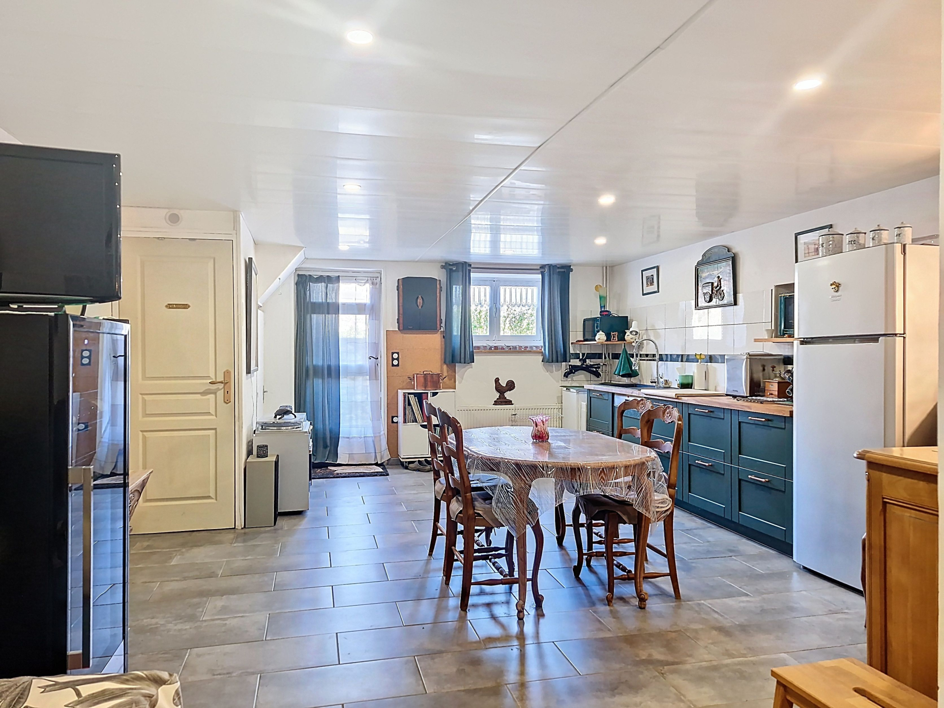 Maison ancienne en plein coeur de ville avec commerces sur place. La maison comprend: entrée, séjour double avec cheminée ouvert sur cuisine équipée, arrière cuisine, garage avce cave, chaufferie, salon avec cuisine et accès jardin. A l'étage: grande chambre pouvant faire office de salle de jeux.
