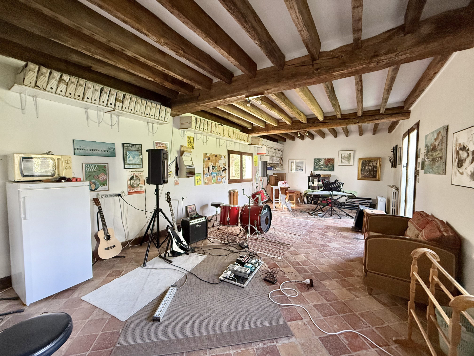 En extérieur, une 2e habitation comprenant : une entrée, une cave, un garage, un WC, un séjour double.