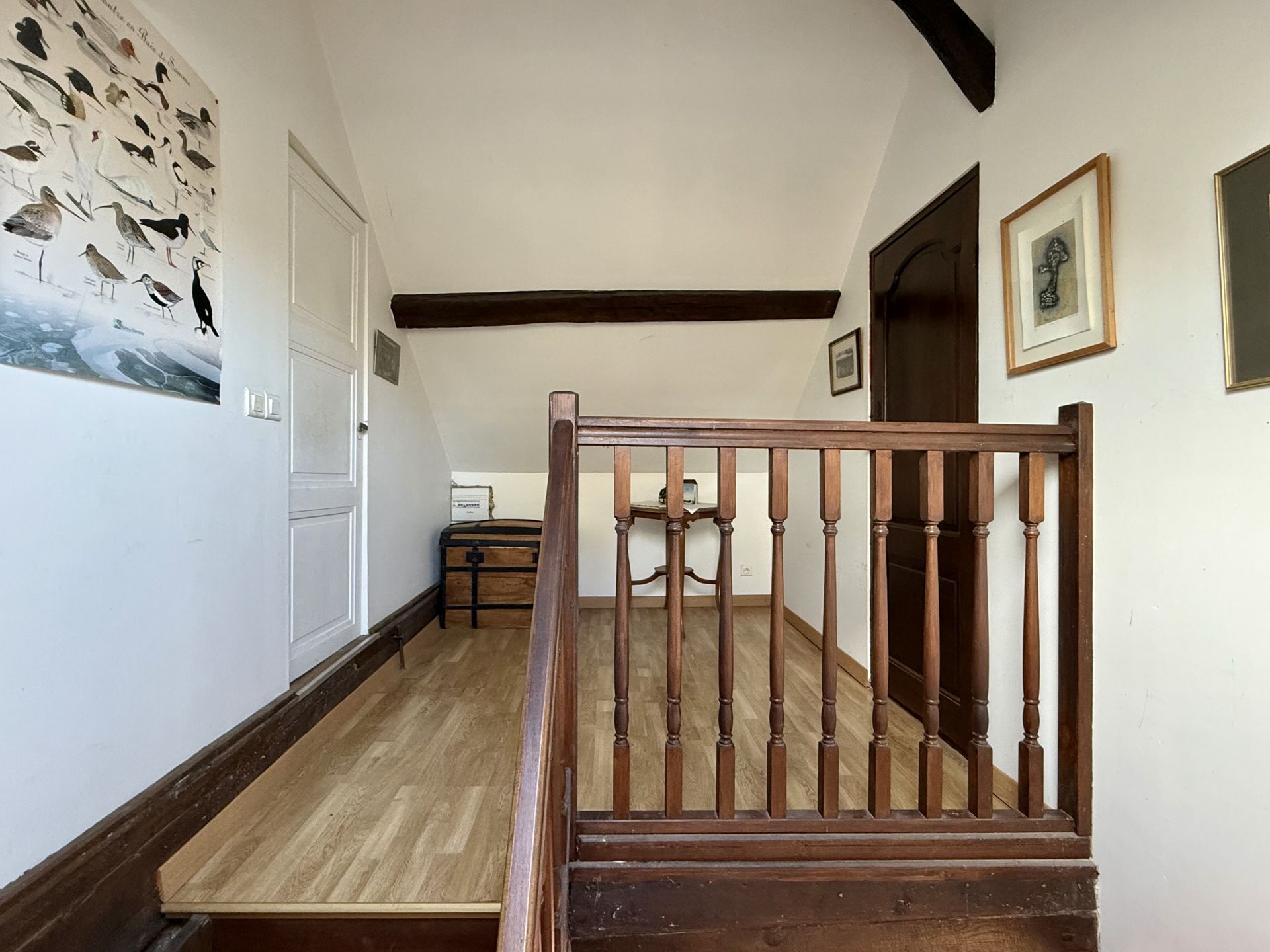 A l'étage : pièce palier desservant : 3 chambres, 1 bureau.
